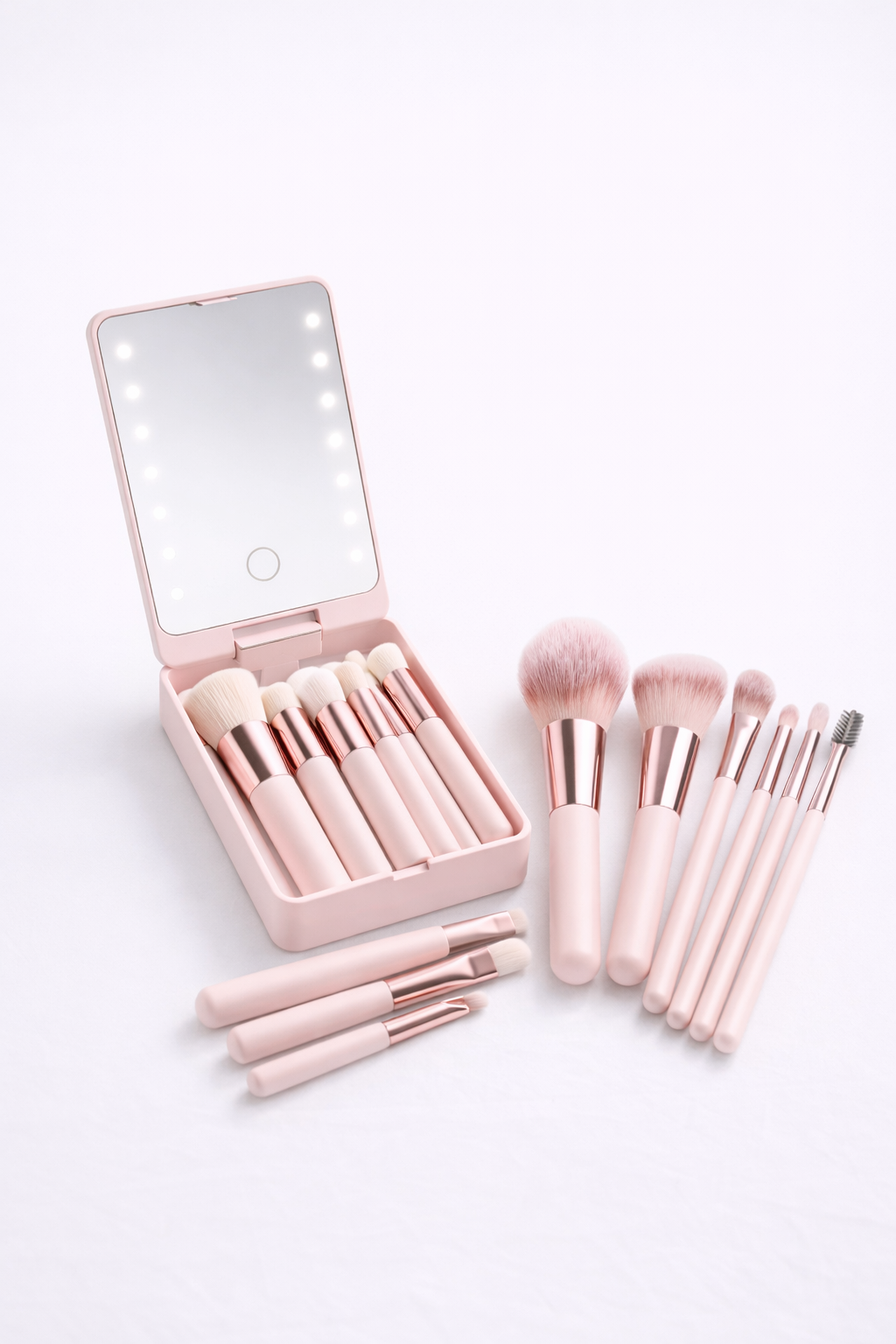 Travel-Friendly Design: Compact and lightweight, the set is perfect for on-the-go touch-ups or travel. The mirror folds neatly, and the brushes fit snugly in the included pouch.
